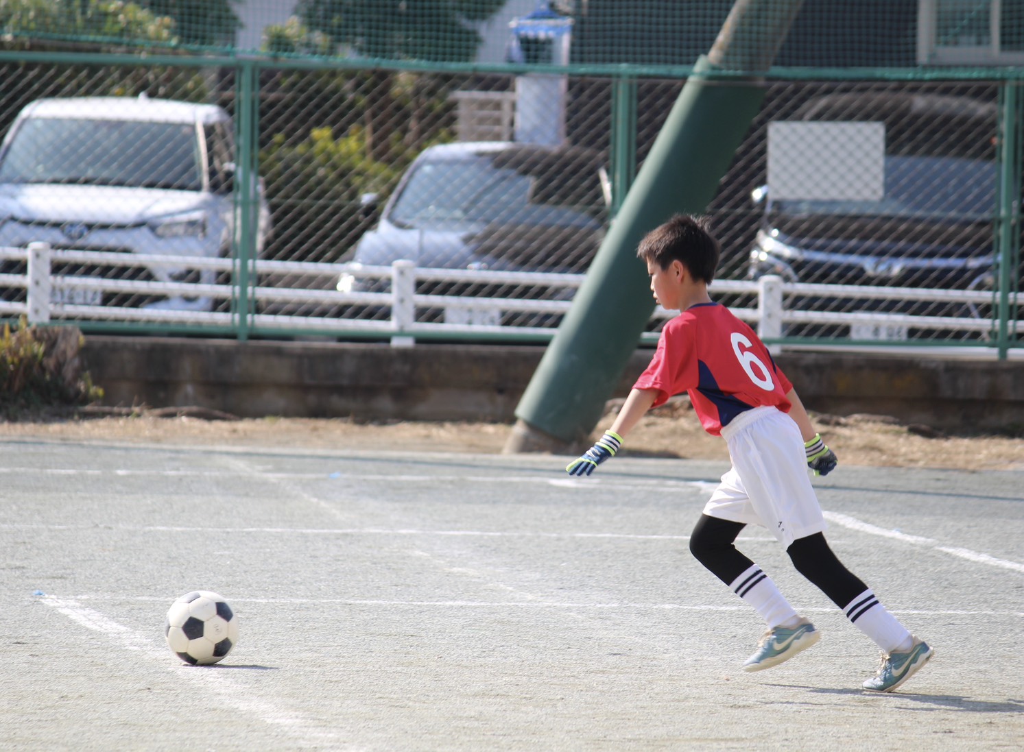 1試合目前半は動きが固く、自分たちの思い通りのサッカーができない場面もありましたが、コーチからの指導を受けて、徐々にトライしていく姿が見られました。