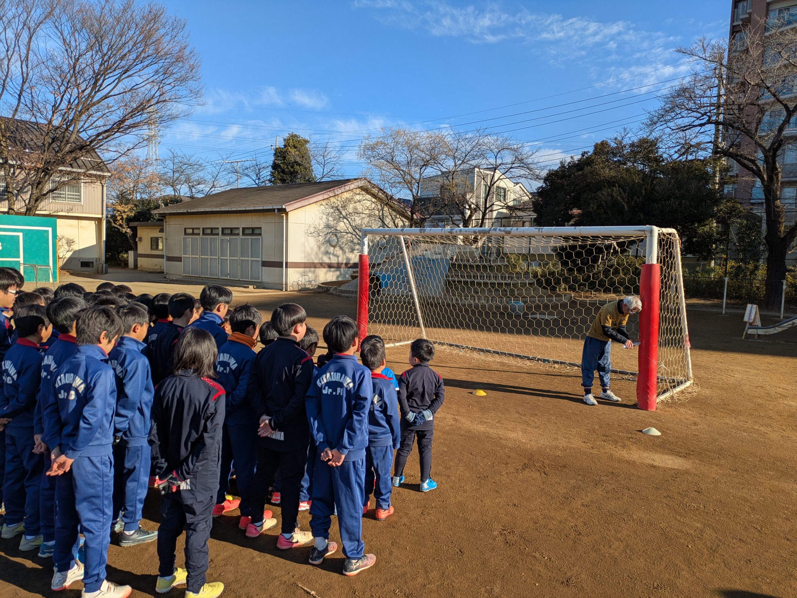 2026年1月10日(土) 雲ひとつない青空の下、暖かな陽射しが降り注ぐ北浦和小学校で、恒例の初蹴りを開催しました。