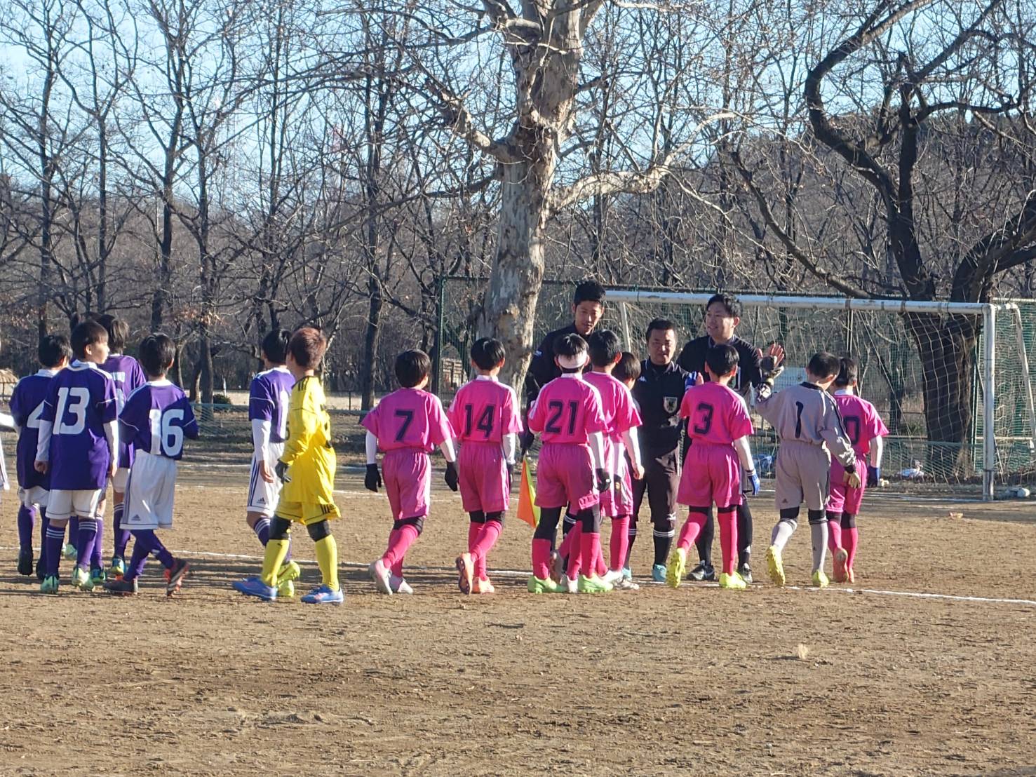 寒空の下、ゴールは奪えませんでしたが、次回につながる試合内容でした。年内最後の試合となり、6年生を中心によく頑張りました。